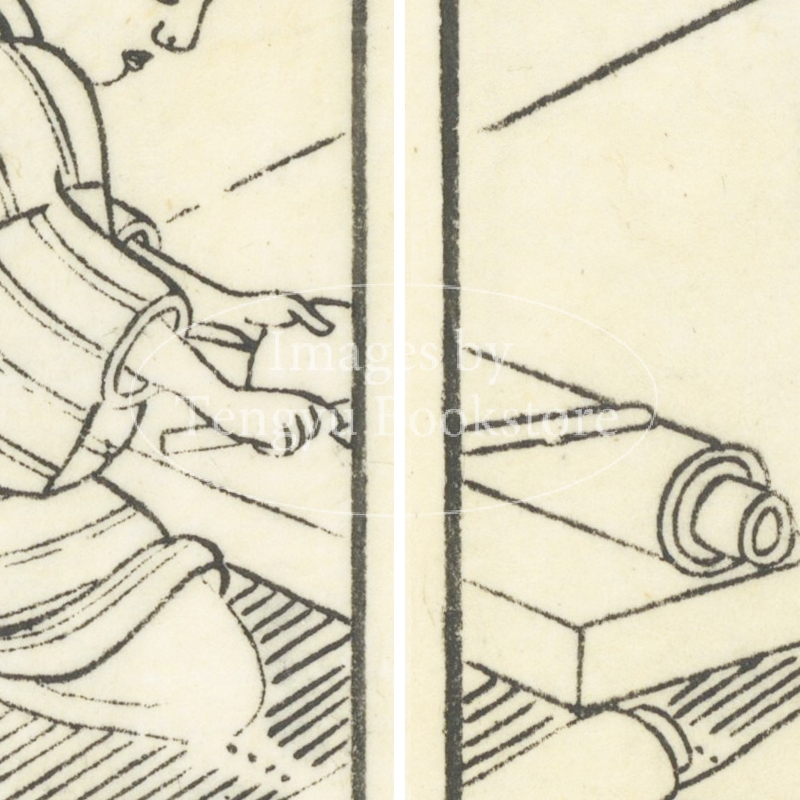 本来は2枚に分けて描かれた作品であるため、色味や図案の整合に若干の不統一があることをご了承ください。