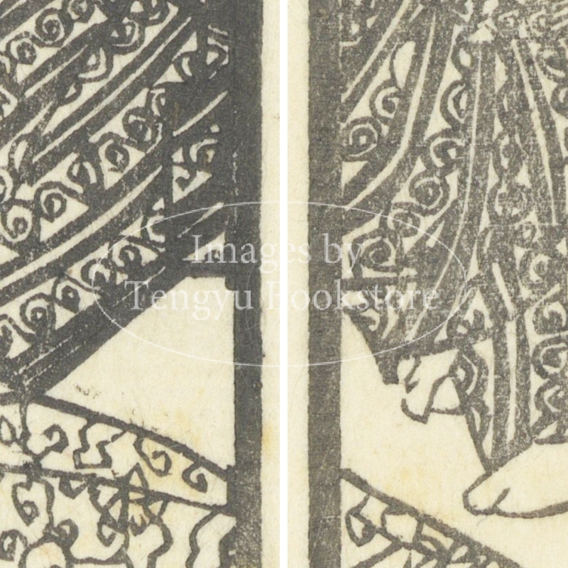 本来は2枚に分けて描かれた作品であるため、色味や図案の整合に若干の不統一があることをご了承ください。