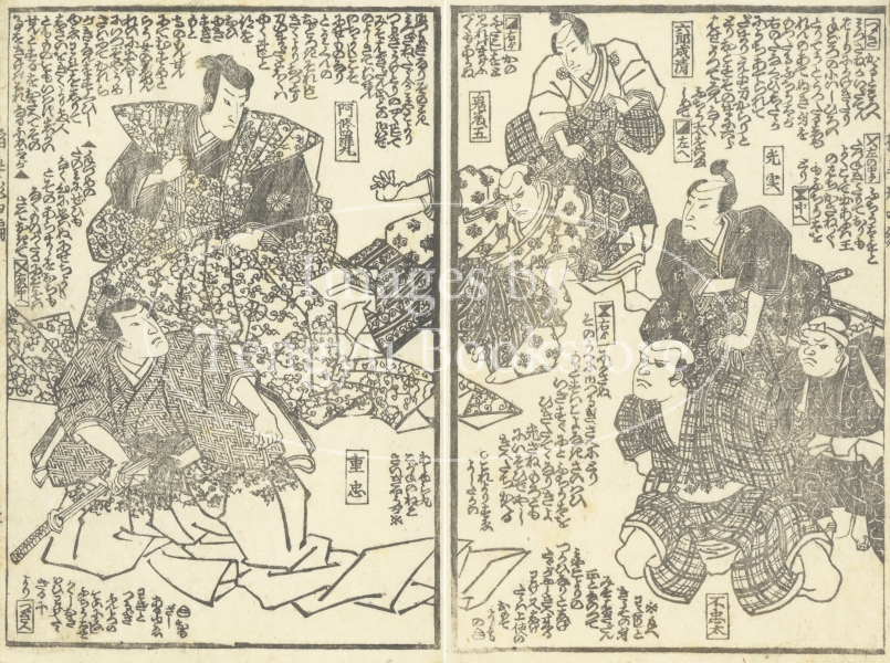 江戸後期の戯作者 楽亭西馬(二代目西宮新六:1799-1858)が物語を、江戸後期の人気浮世絵師 歌川国芳(1798-1861)が挿絵を手掛けています。