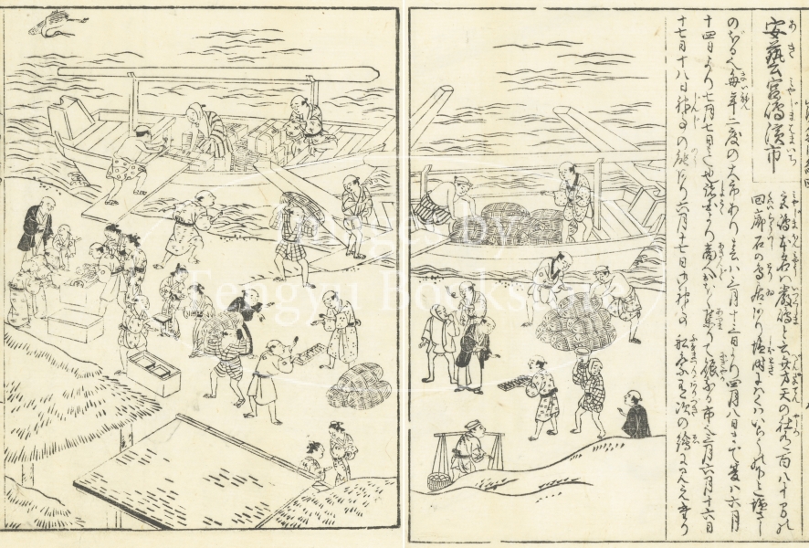 江戸後期に刊行された、日本全国の名産品紹介書「日本山海名物図会」からの一枚。