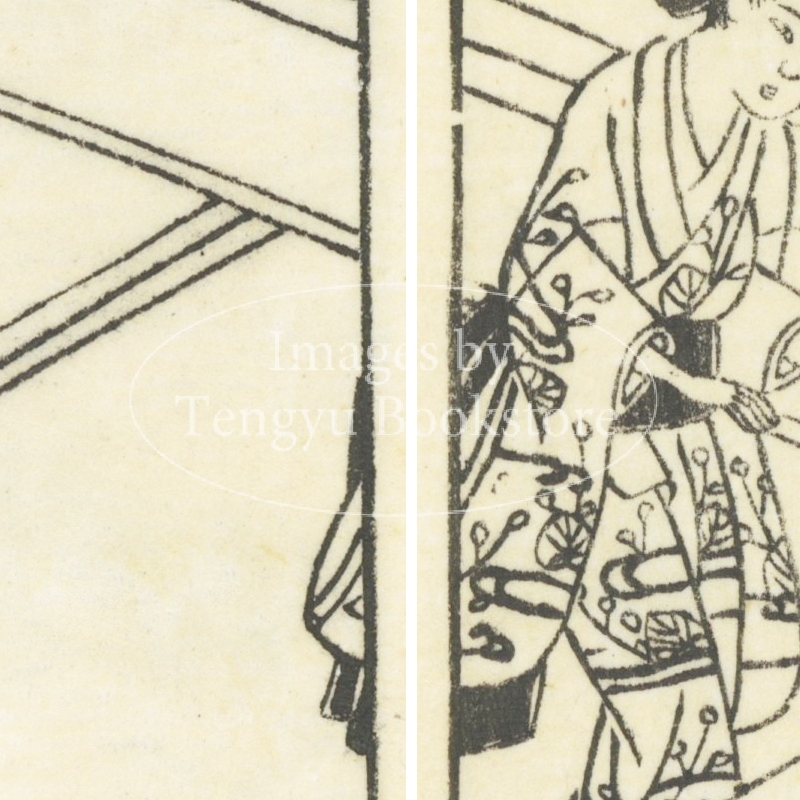 本来は2枚に分けて描かれた作品であるため、色味や図案の整合に若干の不統一があることをご了承ください。