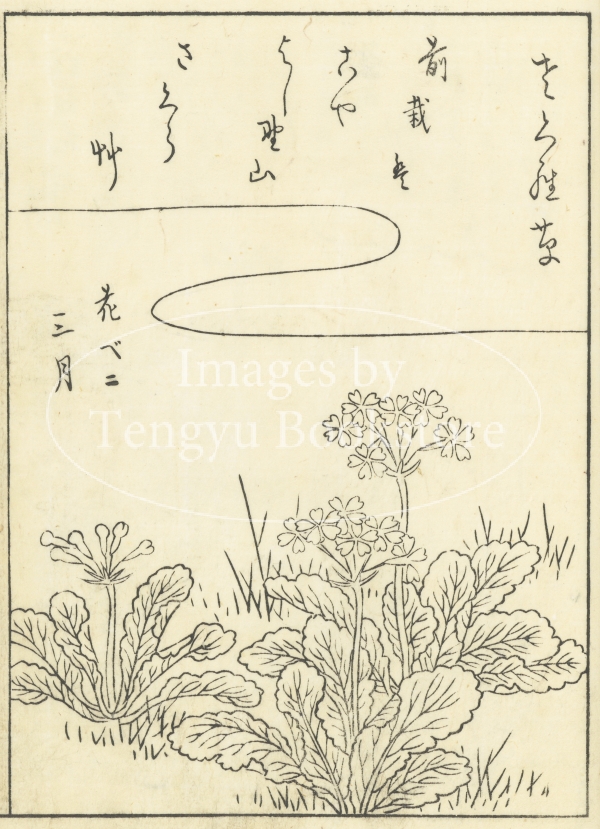 江戸中期に刊行された植物の絵手本「絵本福寿草」からの一枚。