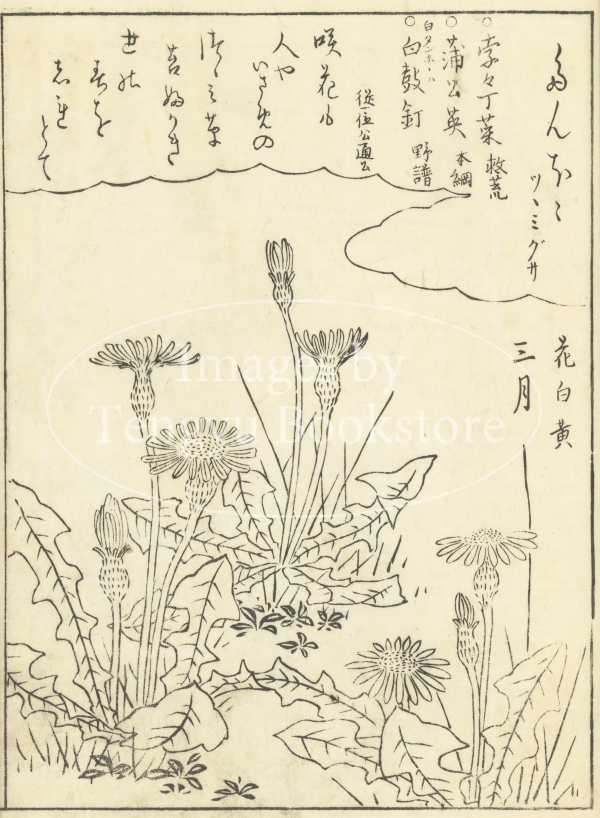 江戸中期に刊行された植物の絵手本「絵本福寿草」からの一枚。