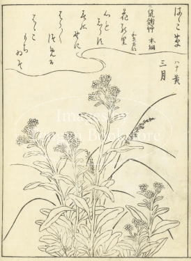 江戸中期に刊行された植物の絵手本「絵本福寿草」からの一枚。