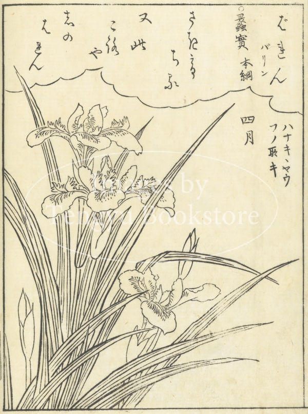 江戸中期に刊行された植物の絵手本「絵本福寿草」からの一枚。