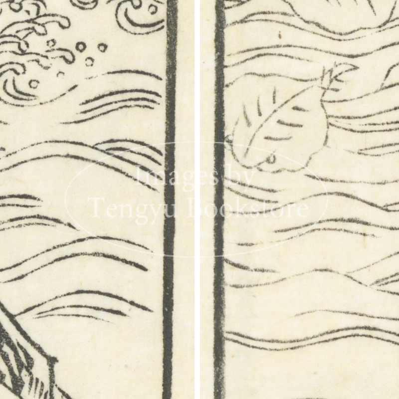 本来は2枚に分けて描かれた作品であるため、色味や図案の整合に若干の不統一があることをご了承ください。
