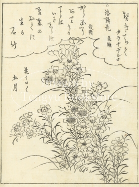 江戸中期に刊行された植物の絵手本「絵本福寿草」からの一枚。