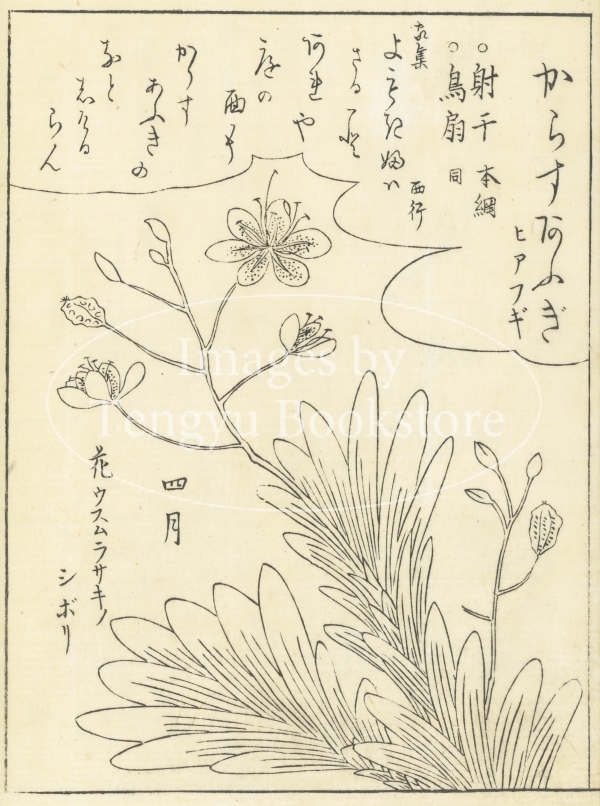 江戸中期に刊行された植物の絵手本「絵本福寿草」からの一枚。