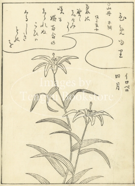 江戸中期に刊行された植物の絵手本「絵本福寿草」からの一枚。