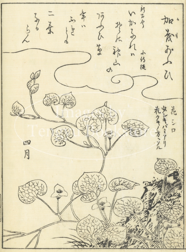 江戸中期に刊行された植物の絵手本「絵本福寿草」からの一枚。
