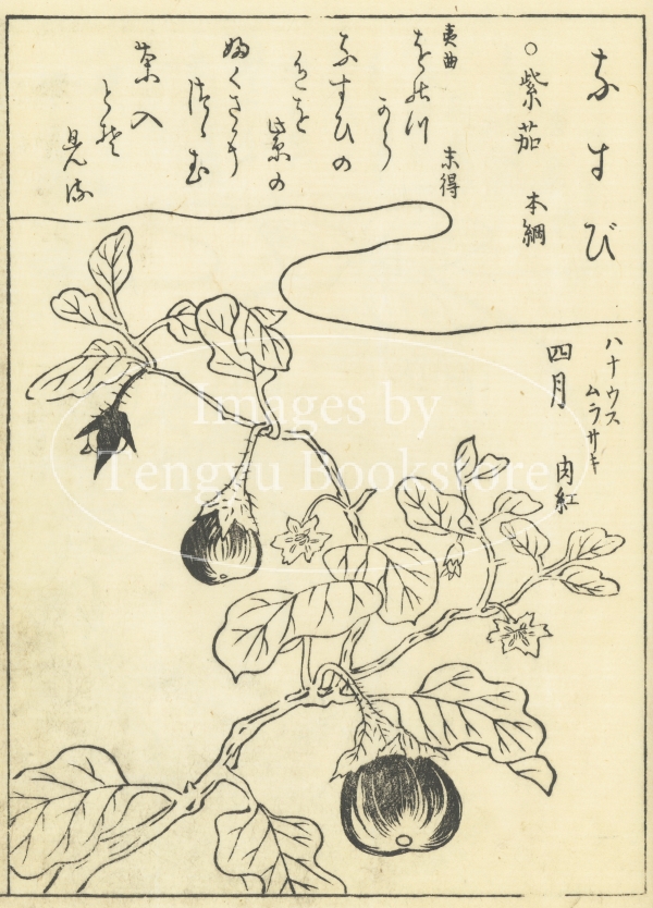 江戸中期に刊行された植物の絵手本「絵本福寿草」からの一枚。