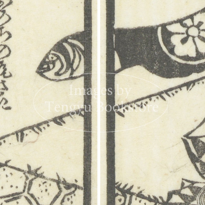本来は2枚に分けて描かれた作品であるため、色味や図案の整合に若干の不統一があることをご了承ください。