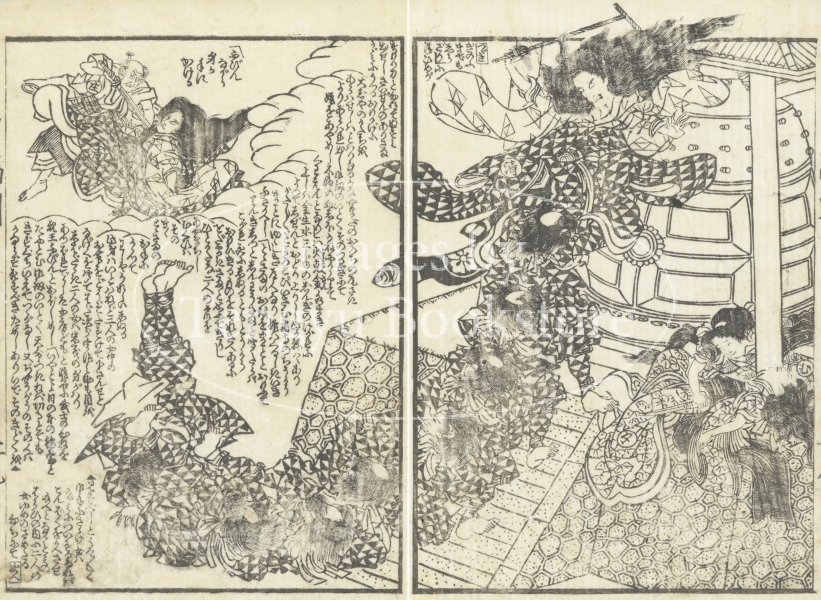 安珍清姫伝説をモチーフにした本書は、江戸時代後期の浮世絵師 式亭三馬(1776-1822)が物語を、同じく江戸時代後期の浮世絵師 歌川国直(1793-1854)が挿絵を描いています。