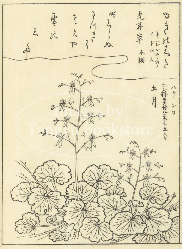 江戸中期に刊行された植物の絵手本「絵本福寿草」からの一枚。