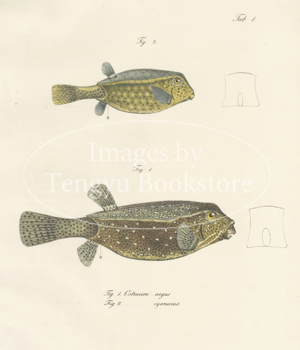 19世紀ドイツの探検家エドゥアルト・リュッペル(1794-1884)の主著「北アフリカ紀行図集」中の1冊「紅海の魚」。