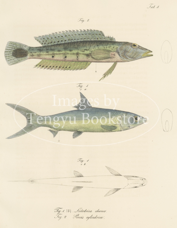 19世紀ドイツの探検家エドゥアルト・リュッペル(1794-1884)の主著「北アフリカ紀行図集」中の1冊「紅海の魚」。