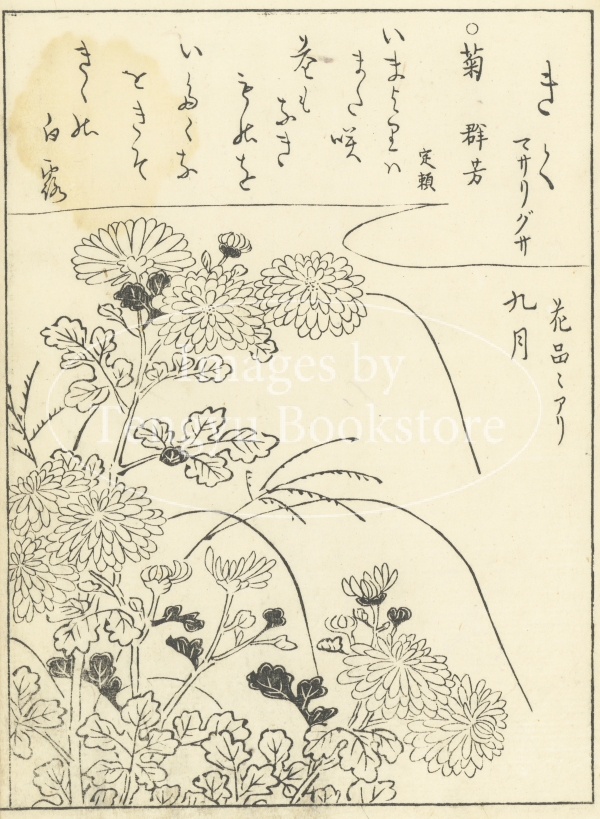 江戸中期に刊行された植物の絵手本「絵本福寿草」からの一枚。