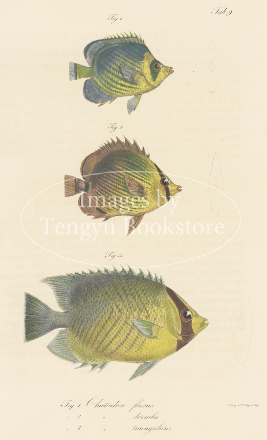 19世紀ドイツの探検家エドゥアルト・リュッペル(1794-1884)の主著「北アフリカ紀行図集」中の1冊「紅海の魚」。
