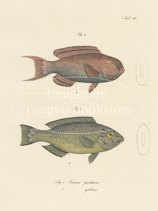 19世紀ドイツの探検家エドゥアルト・リュッペル(1794-1884)の主著「北アフリカ紀行図集」中の1冊「紅海の魚」。