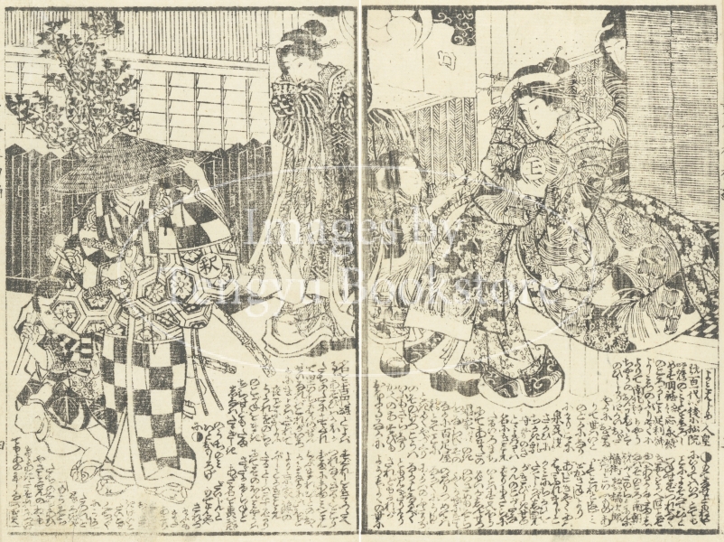 江戸時代後期に刊行された草双紙「黄金水大盡盃」(おうごんすいだいじんさかずき)の挿絵。