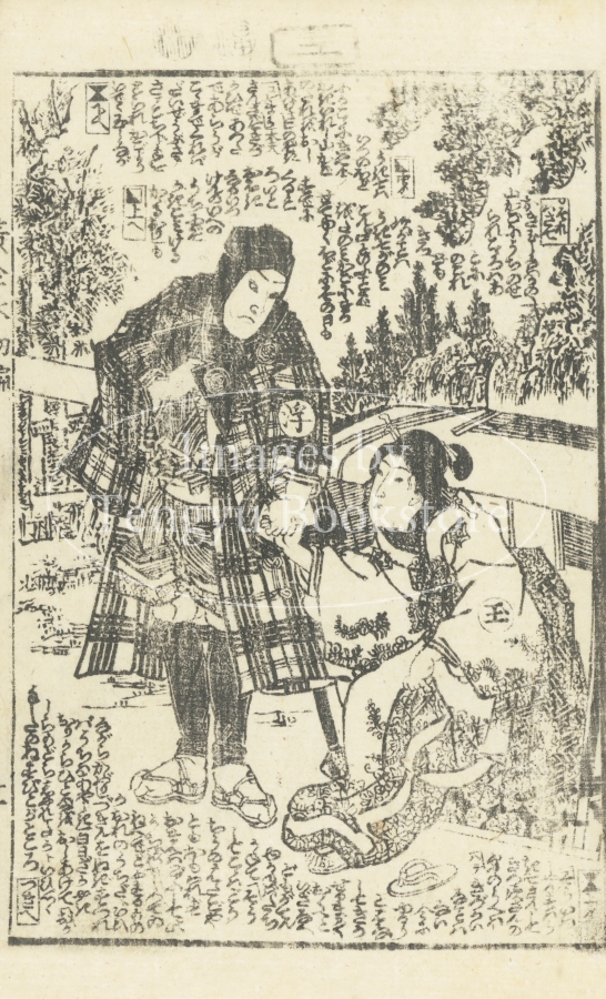 江戸後期の戯作者 為永春水(1790-1844)の物語に、浮世絵師 歌川国輝(生没年不詳)・国光(生没年不詳)・国貞(1786-1865)・国芳(1798-1861)・芳幾(1833-1904)らが挿絵をつけています。