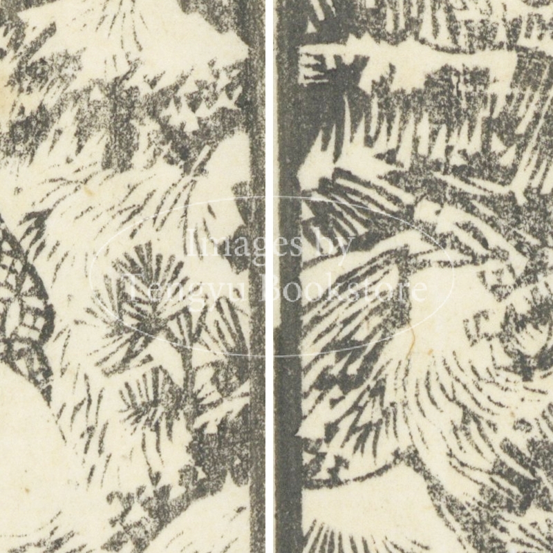 本来は2枚に分けて描かれた作品であるため、色味や図案の整合に若干の不統一があることをご了承ください。
