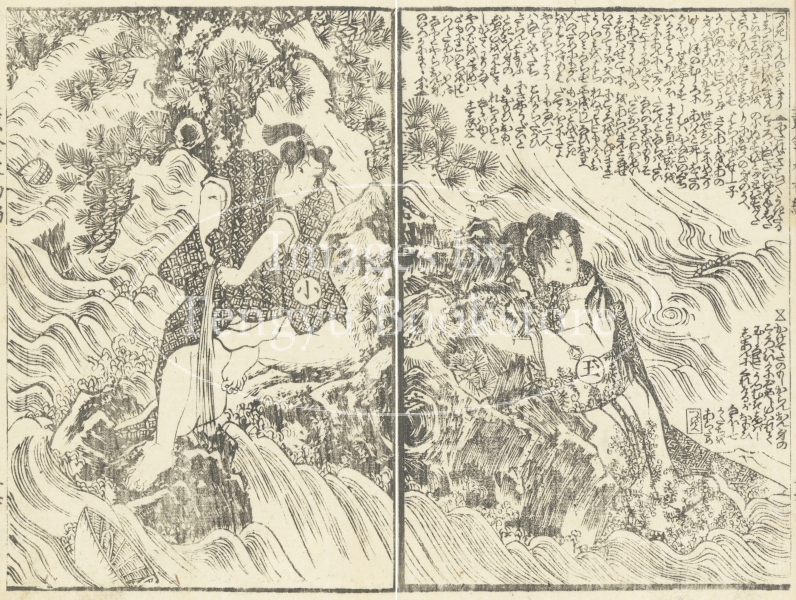 江戸時代後期に刊行された草双紙「黄金水大盡盃」(おうごんすいだいじんさかずき)の挿絵。