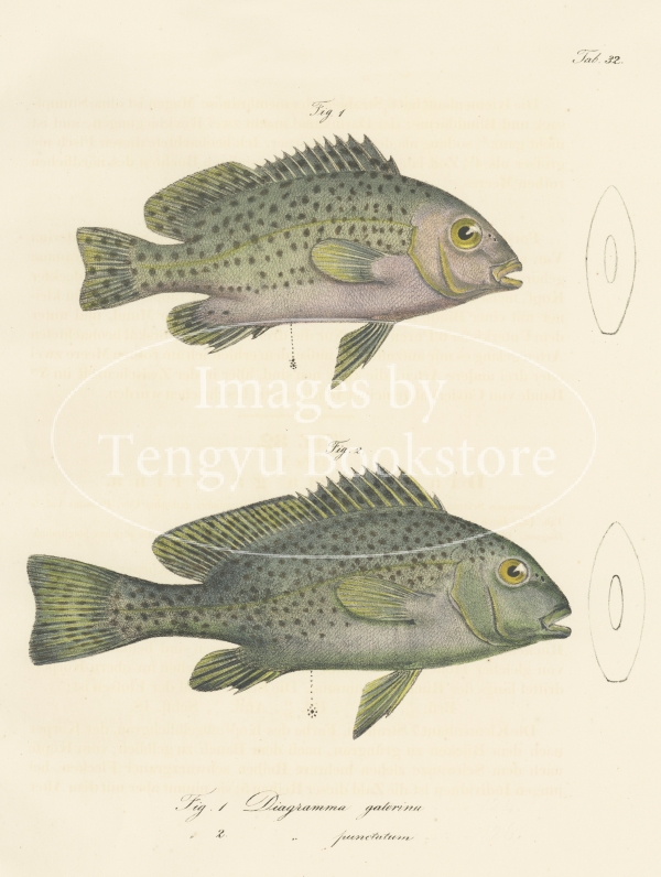 19世紀ドイツの探検家エドゥアルト・リュッペル(1794-1884)の主著「北アフリカ紀行図集」中の1冊「紅海の魚」。