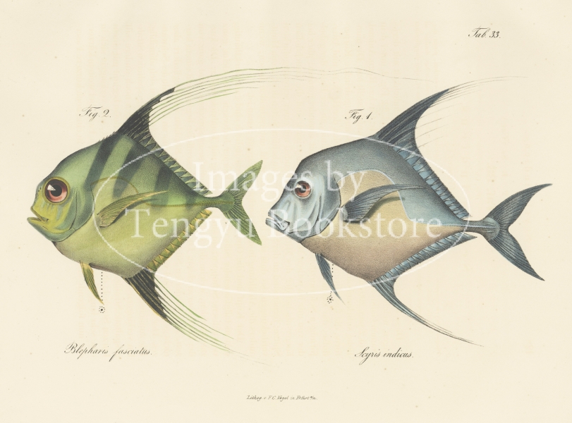 19世紀ドイツの探検家エドゥアルト・リュッペル(1794-1884)の主著「北アフリカ紀行図集」中の1冊「紅海の魚」。