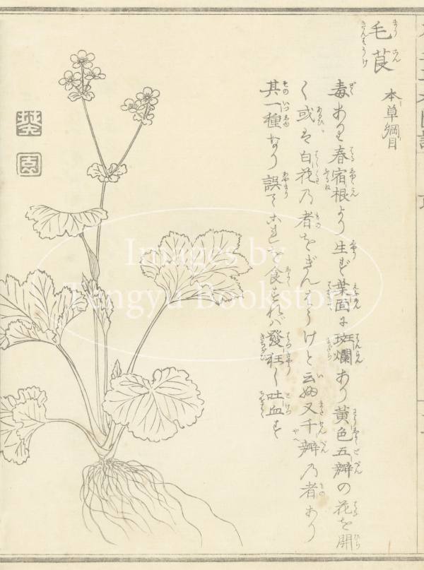 尾張の本草学者清原重巨が著した本書は、122種の毒草について名称や特徴を、過去の本草書からの引用を用いつつ記した植物図鑑。同時に刊行した「草木性譜」の対となる本草書。