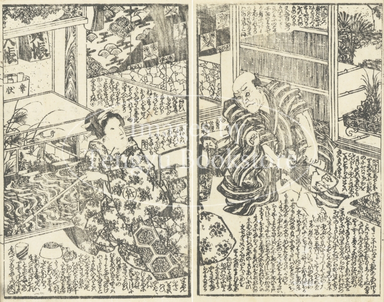 江戸時代後期に刊行された草双紙「黄金水大盡盃」(おうごんすいだいじんさかずき)の挿絵。