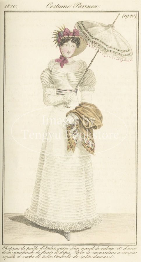 毎号、収録された手彩色銅版画によるファッションイラストは、19世紀初期の貴重な服飾史料としても、アンティークアートとしても高く評価されています。