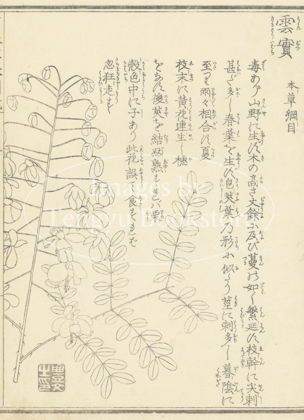 尾張の本草学者清原重巨が著した本書は、122種の毒草について名称や特徴を、過去の本草書からの引用を用いつつ記した植物図鑑。同時に刊行した「草木性譜」の対となる本草書。