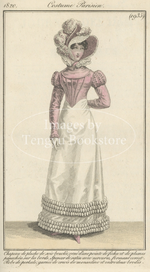 毎号、収録された手彩色銅版画によるファッションイラストは、19世紀初期の貴重な服飾史料としても、アンティークアートとしても高く評価されています。