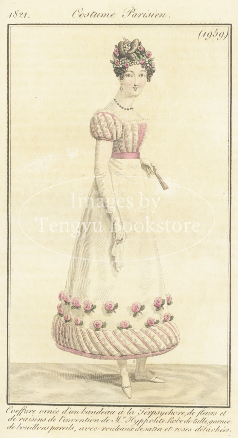 毎号、収録された手彩色銅版画によるファッションイラストは、19世紀初期の貴重な服飾史料としても、アンティークアートとしても高く評価されています。