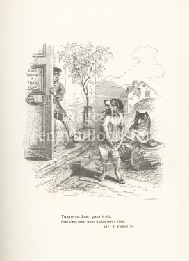 19世紀フランスの挿絵画家J.J.グランヴィル(1803-1847)の挿絵本「フロリアンの寓話」の1ページ。