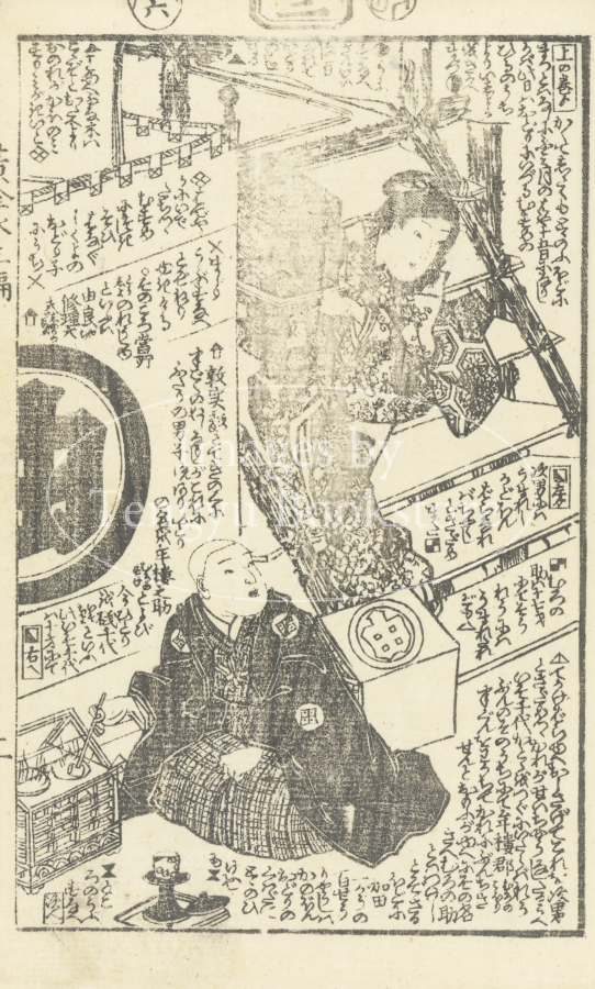 江戸時代後期に刊行された草双紙「黄金水大盡盃」(おうごんすいだいじんさかずき)の挿絵。