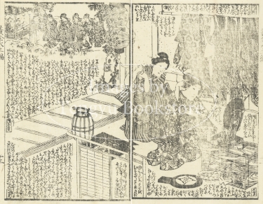 江戸時代後期に刊行された草双紙「黄金水大盡盃」(おうごんすいだいじんさかずき)の挿絵。