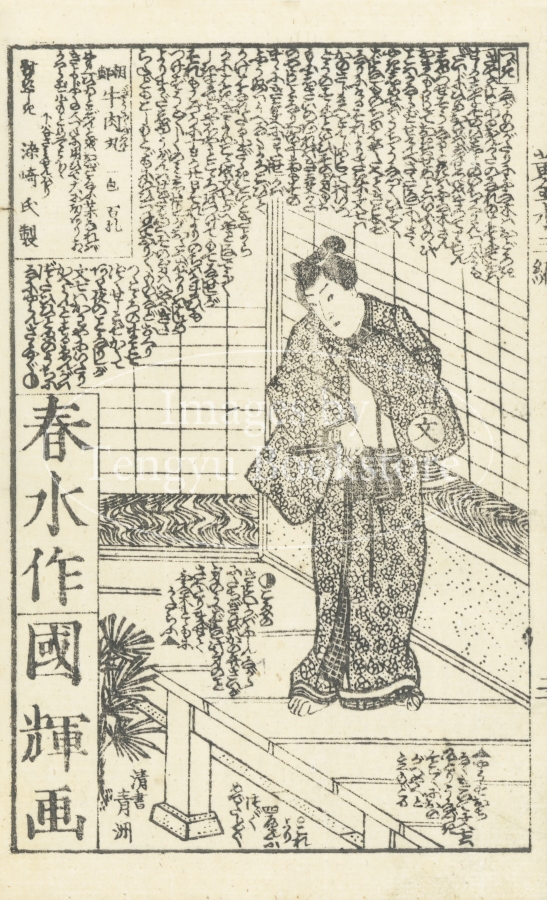 江戸後期の戯作者 為永春水(1790-1844)の物語に、浮世絵師 歌川国輝(生没年不詳)・国光(生没年不詳)・国貞(1786-1865)・国芳(1798-1861)・芳幾(1833-1904)らが挿絵をつけています。