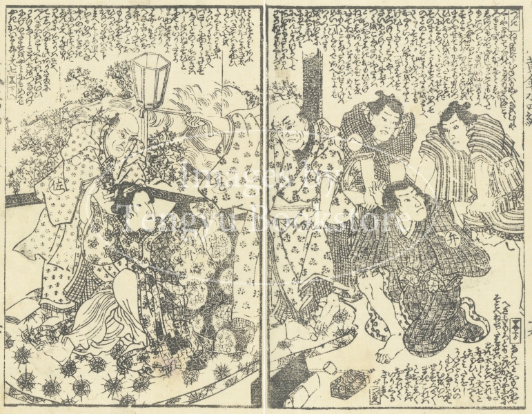 江戸時代後期に刊行された草双紙「黄金水大盡盃」(おうごんすいだいじんさかずき)の挿絵。