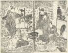 江戸時代後期に刊行された草双紙「黄金水大盡盃」(おうごんすいだいじんさかずき)の挿絵。