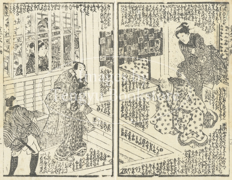 江戸後期の戯作者 為永春水(1790-1844)の物語に、浮世絵師 歌川国輝(生没年不詳)・国光(生没年不詳)・国貞(1786-1865)・国芳(1798-1861)・芳幾(1833-1904)らが挿絵をつけています。