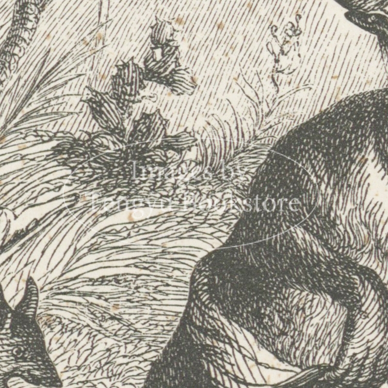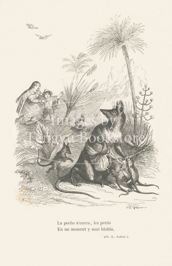 19世紀フランスの挿絵画家J.J.グランヴィル(1803-1847)の挿絵本「フロリアンの寓話」の1ページ。