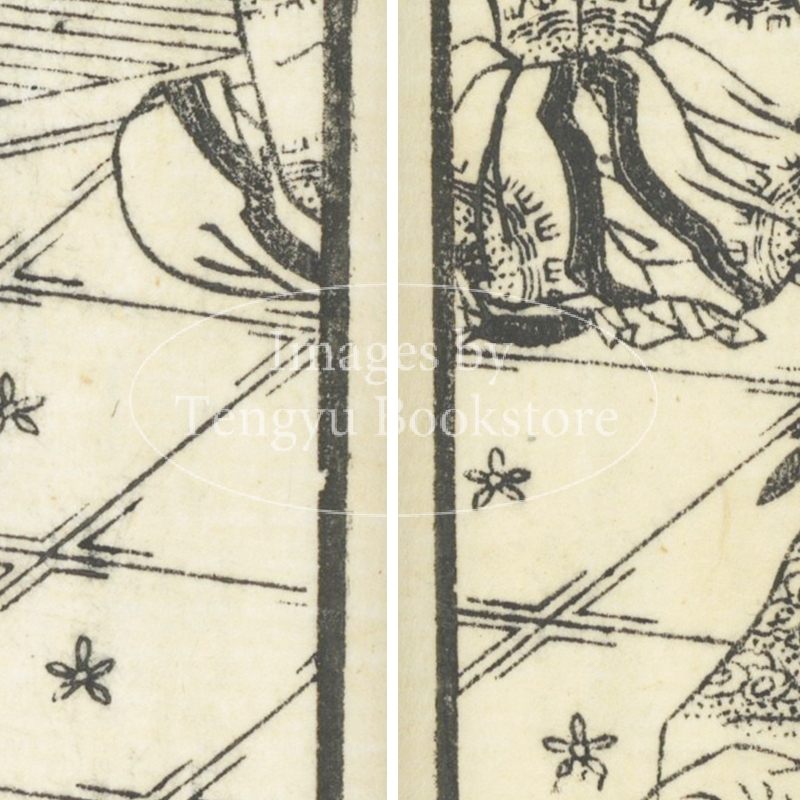 本来は2枚に分けて描かれた作品であるため、色味や図案の整合に若干の不統一があることをご了承ください。