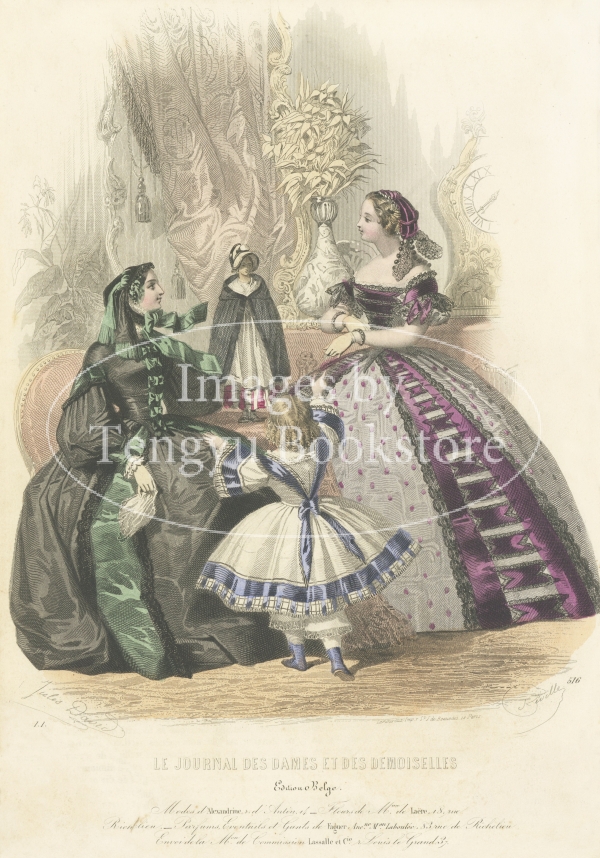 19世紀フランスのファッション雑誌「Journal des Dames et des Demoiselles / 婦人と令嬢のための雑誌」収録のファッション・プレート。