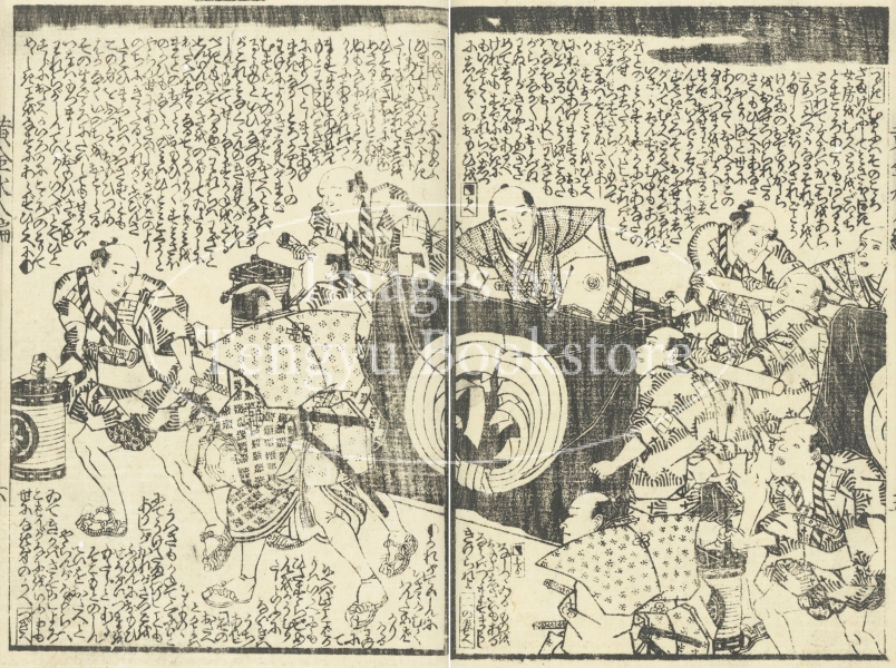 江戸時代後期に刊行された草双紙「黄金水大盡盃」(おうごんすいだいじんさかずき)の挿絵。