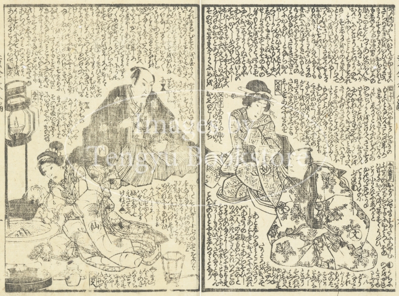 江戸時代後期に刊行された草双紙「黄金水大盡盃」(おうごんすいだいじんさかずき)の挿絵。