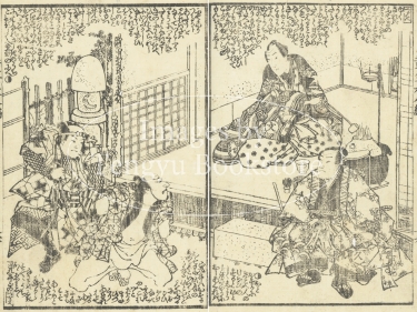 江戸時代後期に刊行された草双紙「黄金水大盡盃」(おうごんすいだいじんさかずき)の挿絵。