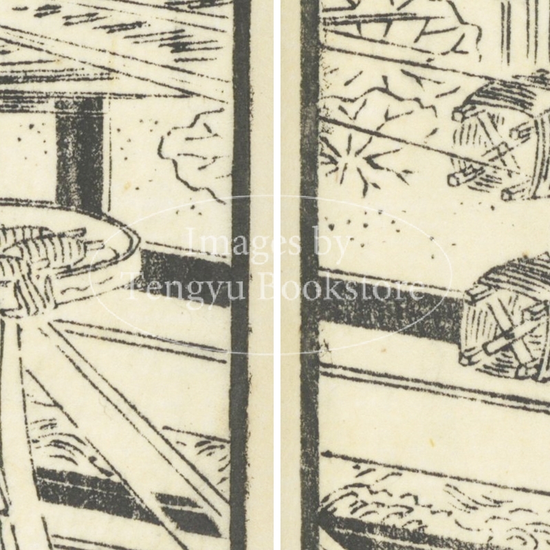 本来は2枚に分けて描かれた作品であるため、色味や図案の整合に若干の不統一があることをご了承ください。