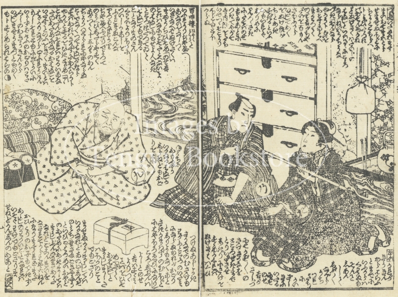 江戸時代後期に刊行された草双紙「黄金水大盡盃」(おうごんすいだいじんさかずき)の挿絵。